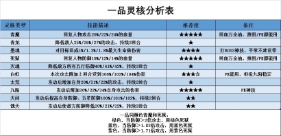 目前一品灵核有三种品阶:绿色,蓝色,紫色,品阶越高技能效果越好