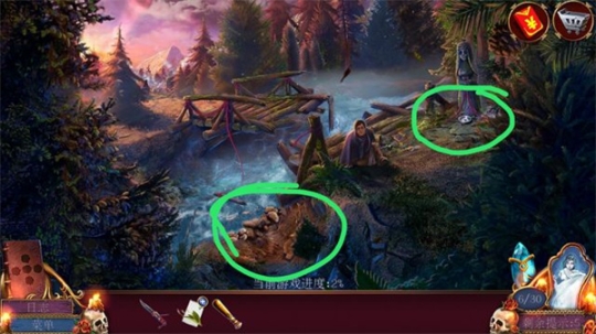 请点击场景左侧的河边位置,随后拿起位于河边的控制杆(木棒材质),同时别忘了拾取场景右边的野玫瑰种子。