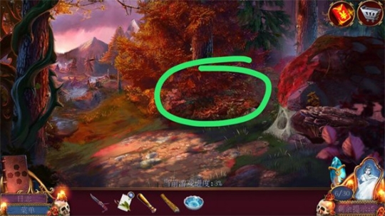 点击左边,拿起荆棘上的细枝,用细枝将手套解救出来,用手套把荆棘拉开(从屏幕中间荆棘尖的位置,往屏幕边缘荆棘粗的位置,滑动手指),到下一场景