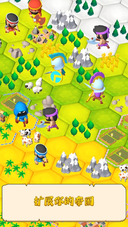 占领村庄,将它们纳入版图。建造农场、军营和矿山,升级建筑以增加资源和军事力量。你会选择严厉的统治,还是仁慈的领导?