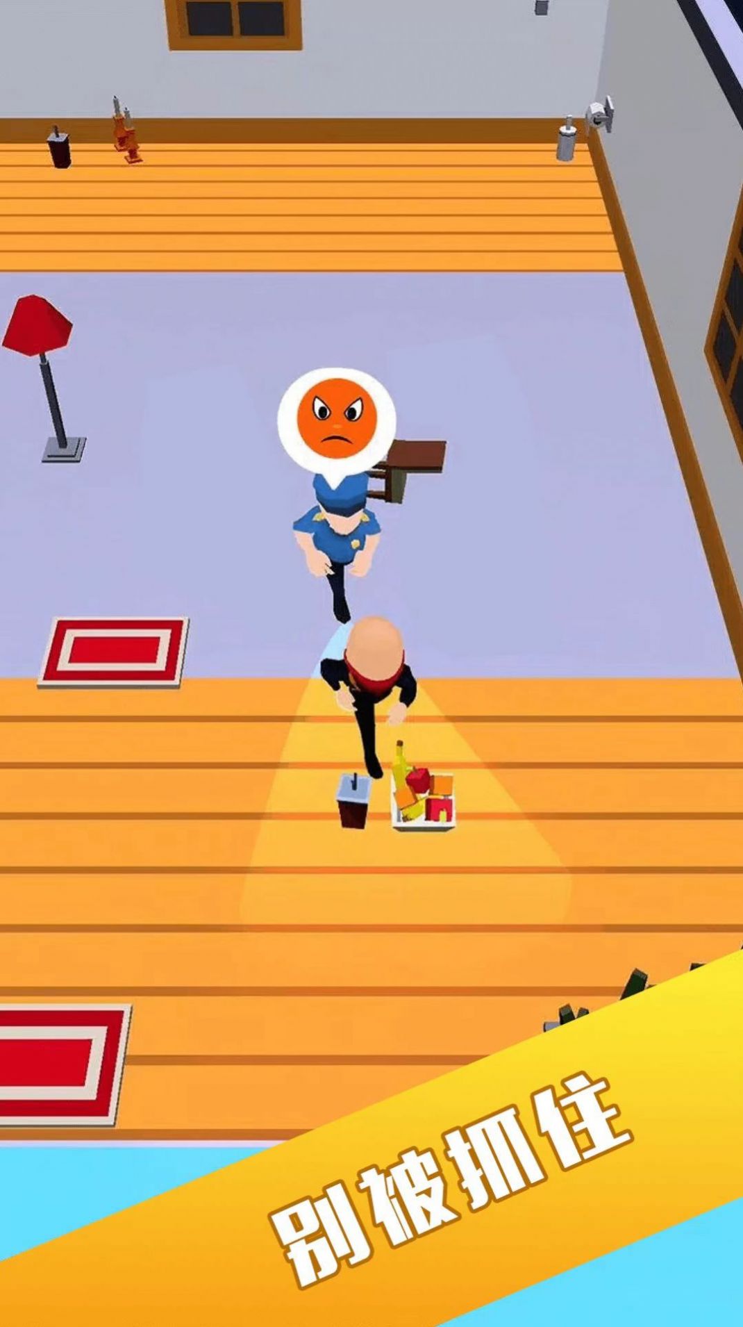 2、警察会在房间中移动巡逻,你必须去拿到钥匙才能打开房门挑战下一关。