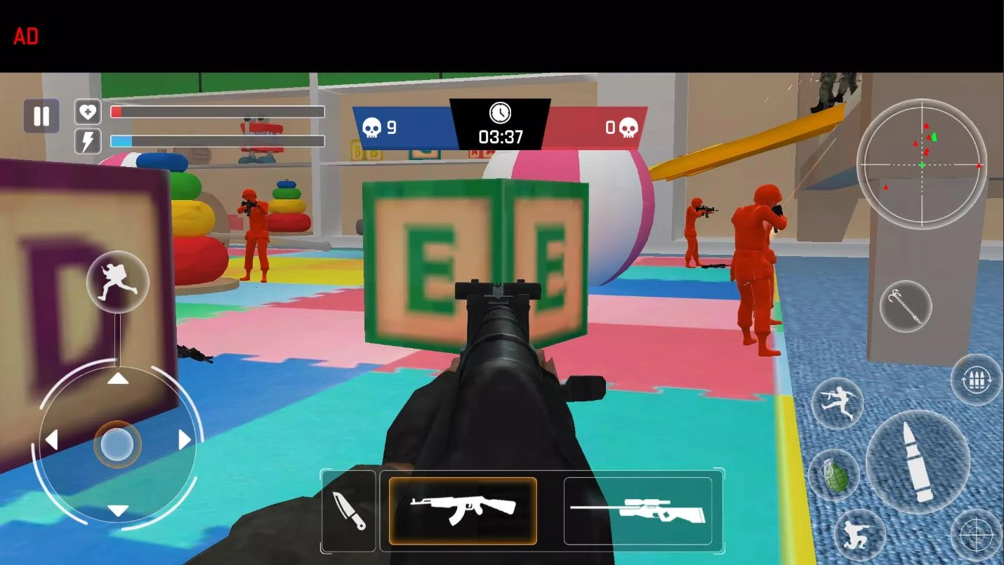 1. 这是一款以第三人称视角呈现的快节奏射击类游戏,玩家将操控迷你玩具士兵与其他玩家进行对战。