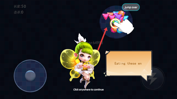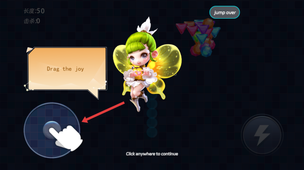 2、操控移动:拖动左侧虚拟摇杆,控制精灵角色移动方向。