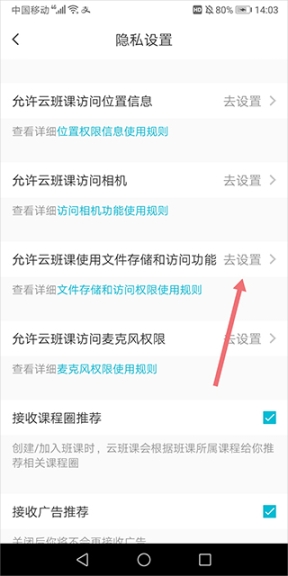 3、接着在访问功能中选择文件存储这一项,点击进行设置即可。