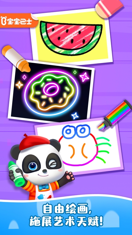 宝宝魔力画笔官方版,这是宝宝巴士专门为孩子们精心打造的一款休闲益智类儿童手游。游戏秉持其一贯的卡通画风,这种风格更能吸引孩子们的注意力。其亮丽的色彩组合与可爱的人物形象,让人一眼便心生喜爱。在这款游戏里,宝宝能够自由自在地开展绘画创作,还能使用各种各样的彩笔,有助于培养孩子对绘画的兴趣。