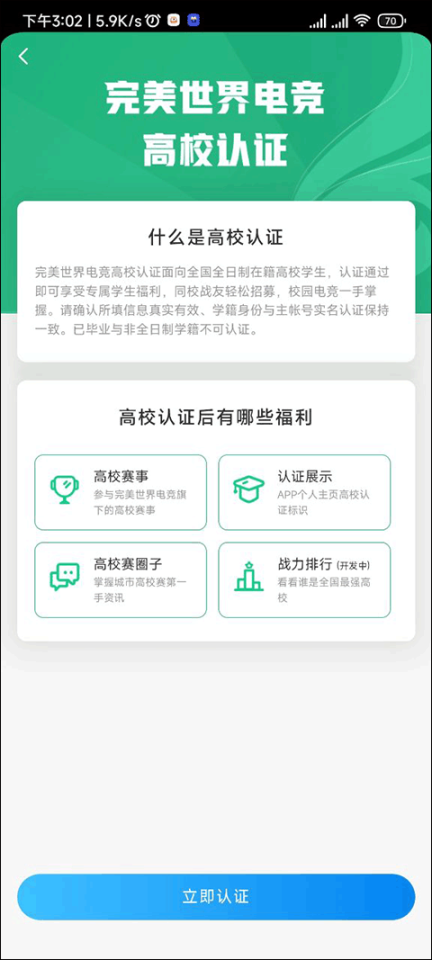 完美世界电竞app如何进行高校认证