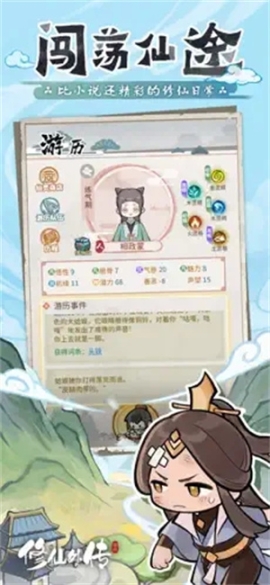 可以通过收集和培养伙伴来为仙灵组建一支队伍,修仙之旅绝不寂寞!部分伙伴携带可继承词条,在游历中也有一定概率会触发赠送法宝。