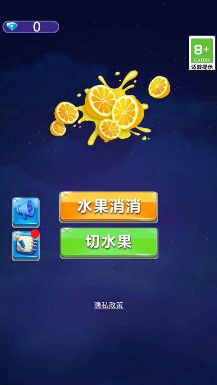 一款休闲的水果益智休闲游戏,游戏的画面精致,音效动听,更有多种不同的水果呈现,游戏有切水果和水果消消2种玩法。