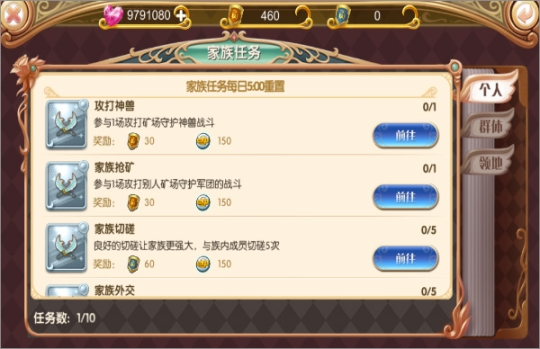 个人贡献::通过家族任务获得,可兑换道具提升队伍实力。