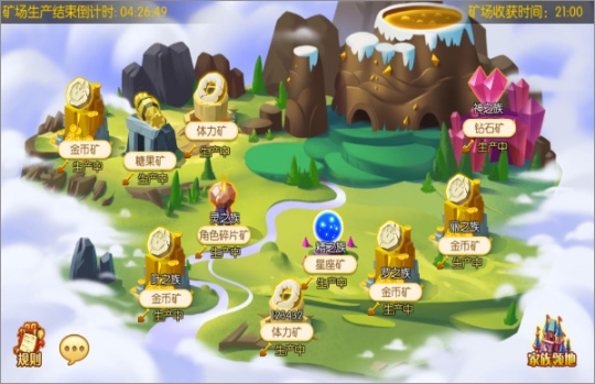 每个家族都拥有3座自己的矿场,为金币矿,经验矿,体力矿,无法被其他家族争夺;