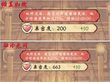 3.红颜双修百分比修炼速度增幅量与红颜亲密度等级相关,萍水相逢(0-99亲密度)双修为修炼速度增幅10%,倾盖如故(100-659亲密度)双修为修炼速度增幅15%,融洽无间(660-2199亲密度)双修为修炼速度增幅20%。