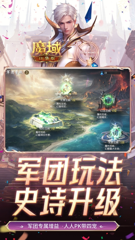-军团决战,全服军团激爽PK,兄弟同心热血攻城战!百人同屏,野外混战,任意地点组团暴虐开打,多人混战才够爽!