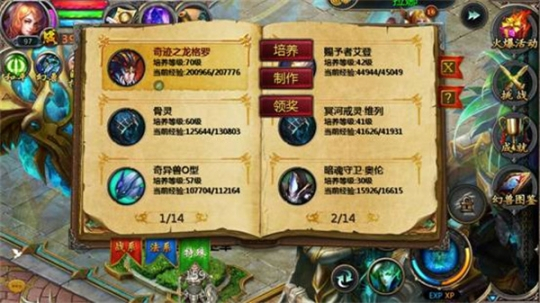 通过幻兽图鉴,我们可以更快更直观地了解到这一点。通过点击屏幕上方的“活动”按钮,便可以在弹出的菜单中找到“幻兽图鉴”选项。通过它,我们可以打开幻兽图鉴面板,查看自己所拥有的、对各类幻兽的培养经验,并对其进行各类操作。