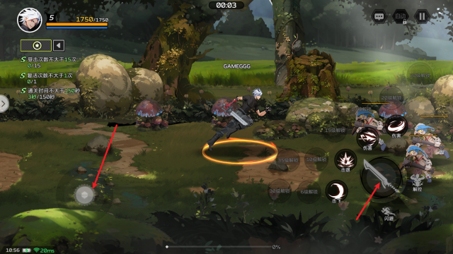 2、接着我们就能够开启正式的战斗了,左侧摇杆控制移动,右侧大剑按钮则是攻击。