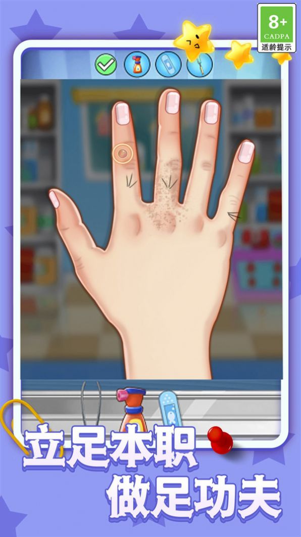 《手掌真实护理医生》是一款模拟手掌护理的休闲游戏。游戏过程充满趣味,要知道,针对手部功能进行保健至关重要。在游戏里,玩家能借助不同的保养功能,去维护或治疗那些手掌患病,亦或是手部皮肤出现问题的病人。