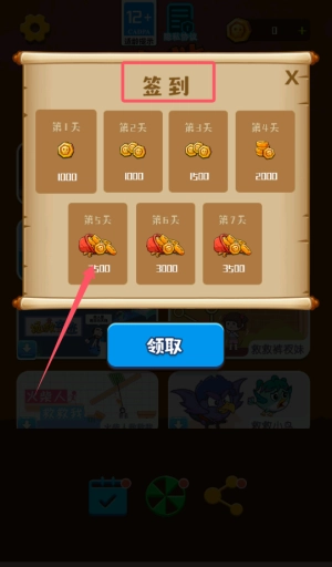 2、当进入游戏之后,我们能够借助签到的方式来获取金币。