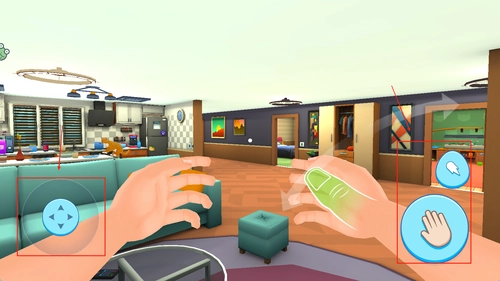 2. 左侧为移动控制区域,右侧则是互动操作面板,点击相应按钮就能完成诸如喂食、抚摸、清理之类的动作。