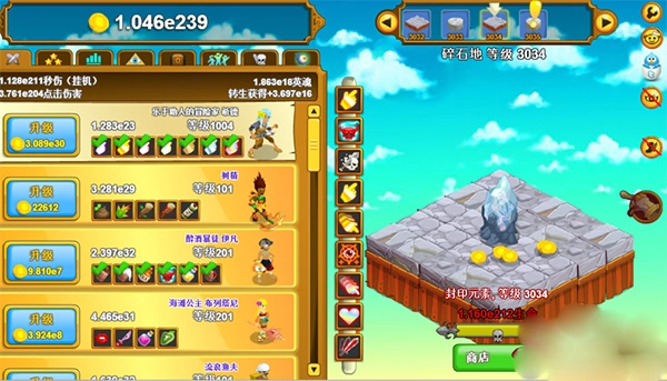 3、每一个角色在每一秒钟都能为我们创造一定收益,角色数量越多,收益增长速度就越快。