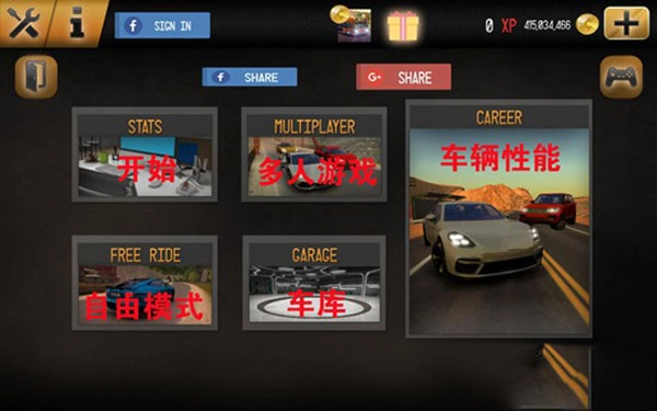 1. 进入游戏之后,系统面板会出现,该面板中的选项分别代表着开始游戏、多人游戏、自由模式、车库以及车辆性能等。