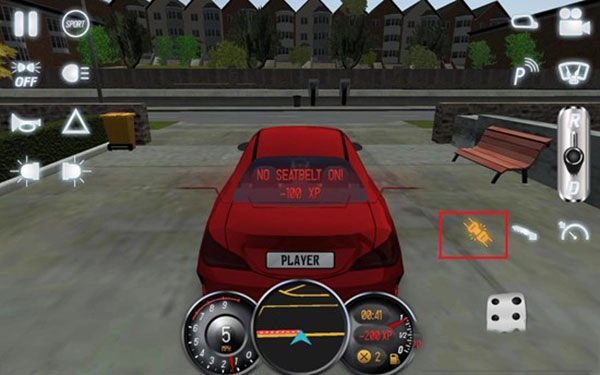 5、开车时,有驾照的朋友们想必清楚,上车首先要做的就是系好安全带。当屏幕右下角的安全带图标显示为黄灯时,表明安全带未系好,此时我们需点击该图标来系好安全带。要是不系安全带,屏幕会提示我们扣除100经验值。