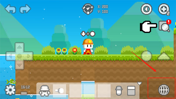 3、然后在游戏正式环节中,需要联机的朋友点击页面右下角的地球标识