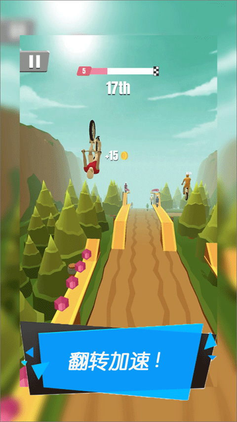 2、游戏中会有许多的路行障碍,合理的利用这些障碍能让你超越对手,同时在空中做出各种高难度动作可以让你获得更高的分数。