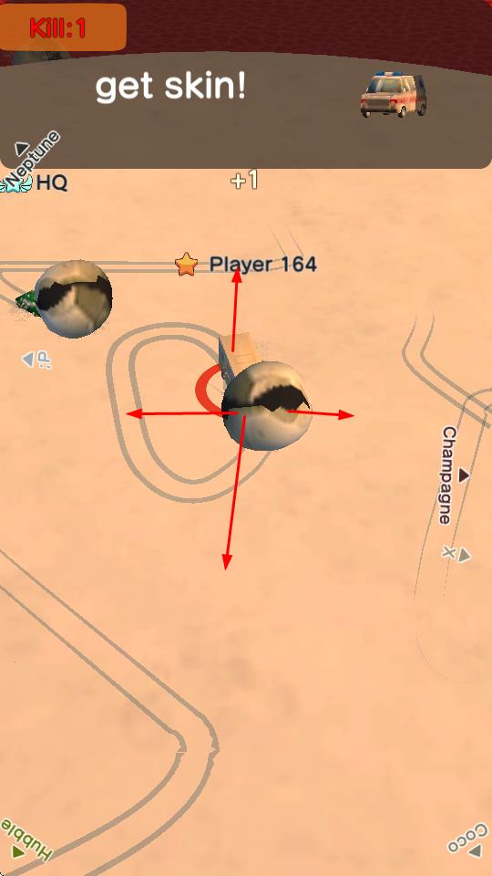 3、在开放地图,驾驶车辆沿道路移动,发现并追击其他玩家、球体,同时留意场景道具、陷阱。