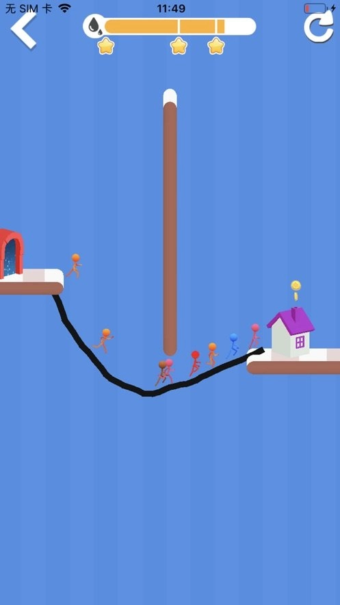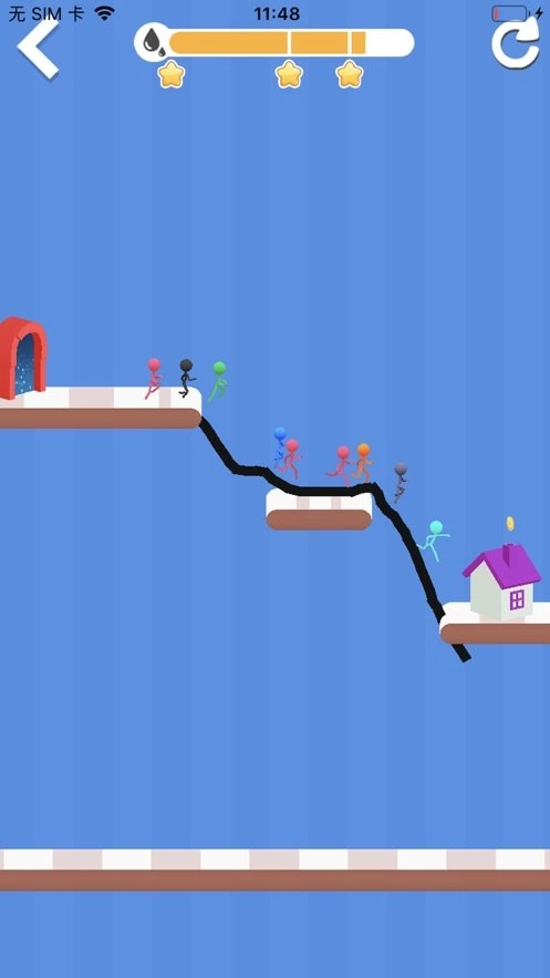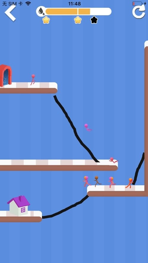 关卡中会出现奔跑的小人,你需要在它们即将经过的路径上绘制道路,以保障它们能顺利通行。