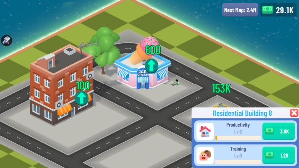 2、首先建设住宅以保障人口居住,接着开设便利店来满足居民日常需求,最后建造办公楼用以创造就业机会,如此形成良性的经济循环。