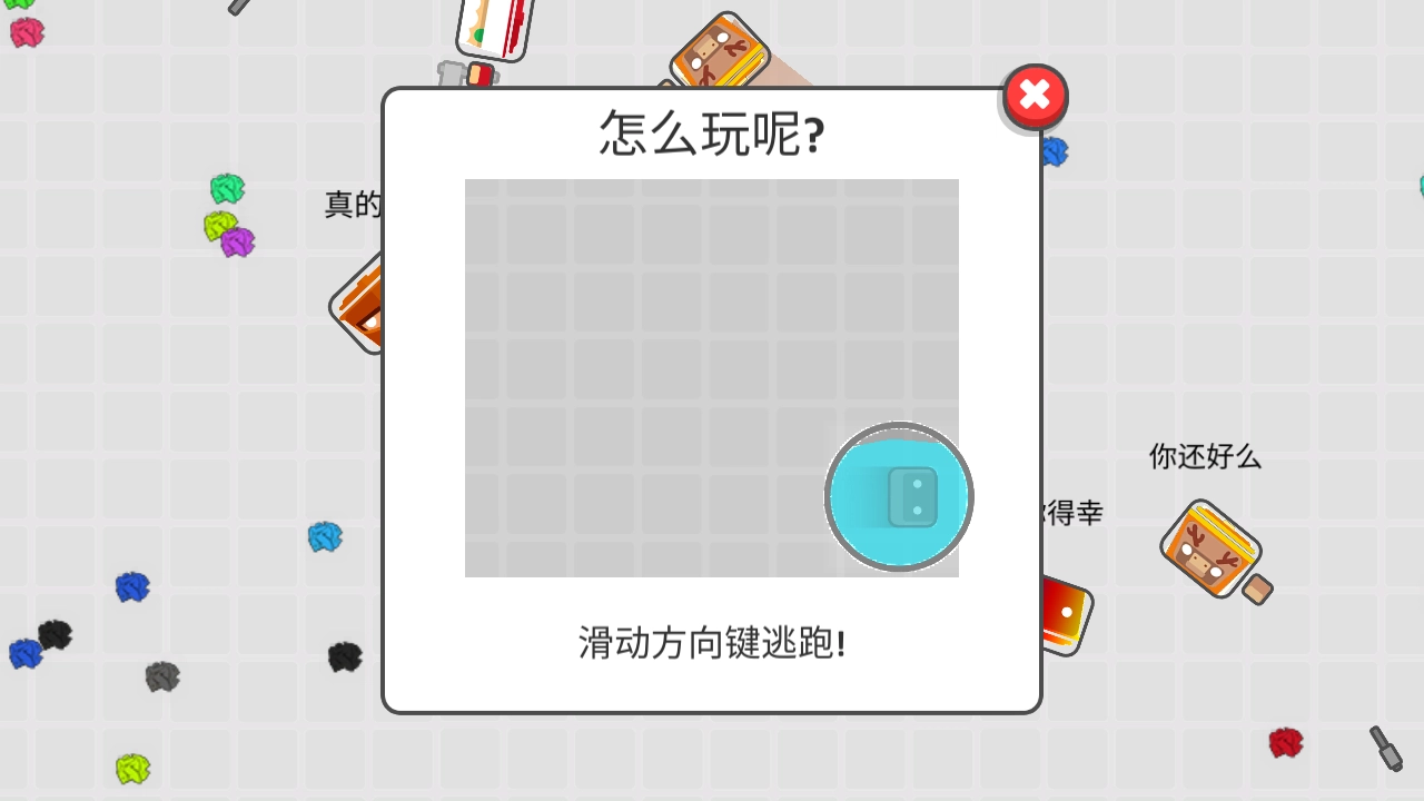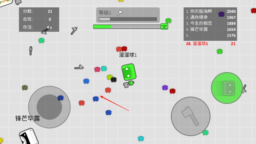 2、巧妙避开那些锋芒毕露的其他玩家,通过操作圆圈去吸附道具红箭头,以此积累经验,提升等级。