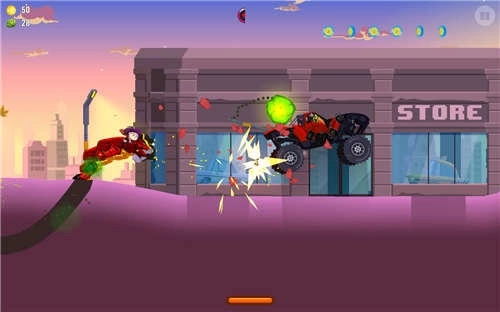 2、boss枪械车,车尾配备机枪,伤害处于中等水平,每次发射五发子弹。遇到时,应尽快跳至较高位置,在枪手一现身就立刻将其消灭,如此能降低应对它的难度。