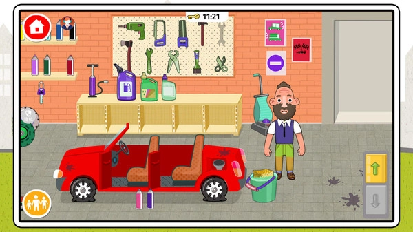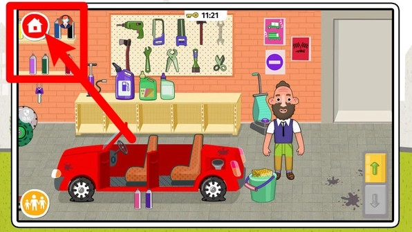 2. 轻点左上角的房屋图标,就能迅速回到主界面。而且在车库中,还能尽情享受自由修车带来的乐趣。