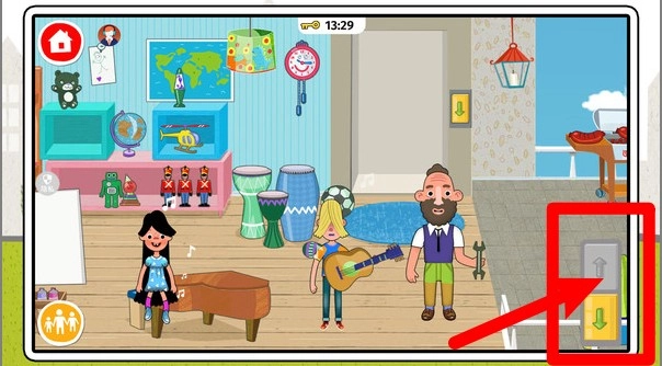 3. 通过电梯按钮,能够上下切换不同楼层的场景,进而探索更多生活区域,还可与角色展开多样的互动操作。