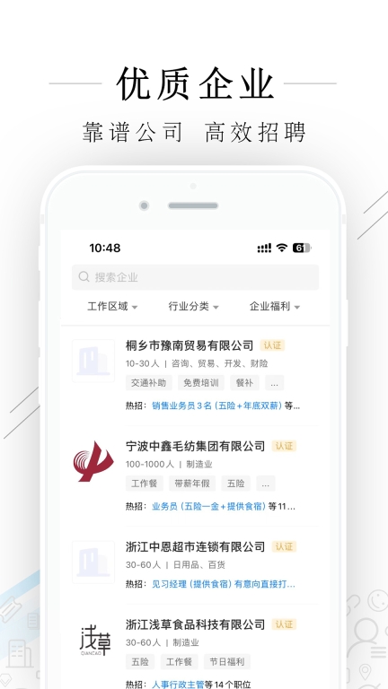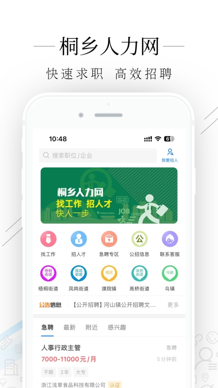 桐乡招聘、桐乡找工作,就看桐乡人力网!桐乡人力网,致力于为求职者提供桐乡本地优质招聘信息、为企业提供招聘渠道,帮助每一个求职者在桐乡人力网找到合适的工作!