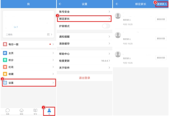 学生登录APP,点击“我”-“设置”,点击“绑定家长”-“邀请家长”,输入相关信息即可发送邀请。