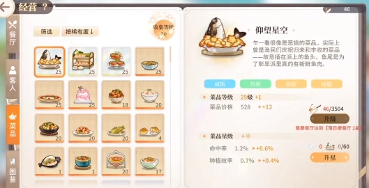 4、研发各类特色美食菜品,可为厨师提供额外助力。凭借独特的培育特性,开启别具一格的美食经营之旅。