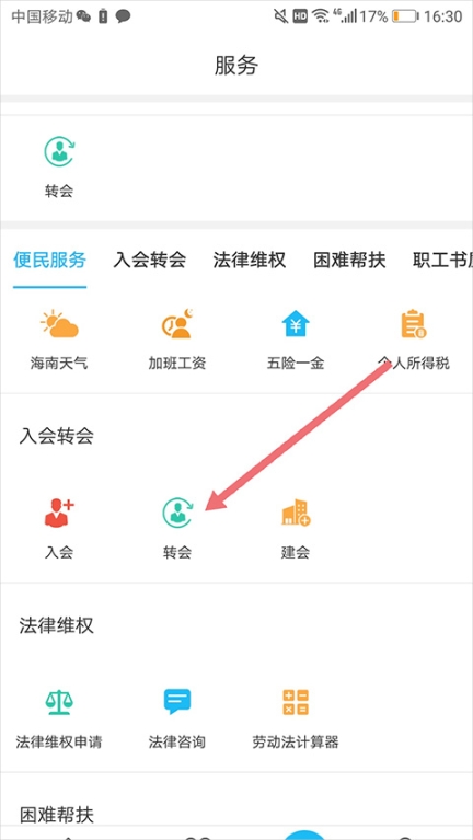 在进行转会操作前,需获得原工会组织与转入工会组织的书面同意。同时,双方要在工会系统中做好交接准备工作。完成上述步骤后,需要转会的个人可在本站下载海南工会云app。待安装成功,打开海南工会云app,使用工会会员账号信息登录,进入【服务】页面,点击【转会】选项,按照相关提示输入信息并上传资料,即可完成转会流程。
