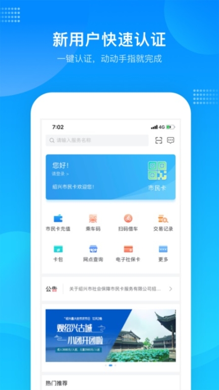 成为绍兴市民云的一员非常简单,只需要下载安装好应用程序后按照提示完成手机号码验证及身份认证步骤即可。