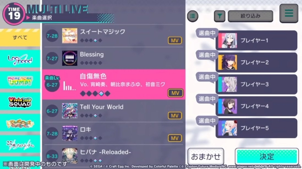 在世界计划彩色舞台中,从上方依次出现的指令需跟随节奏和不同指令进行连击以完成COMBO。游戏过程中,背景会播放由SEGAGames制作的3D动画MV。然而,为了尊重每首歌的独特印象,部分曲目将以2D动画MV的形式展示。