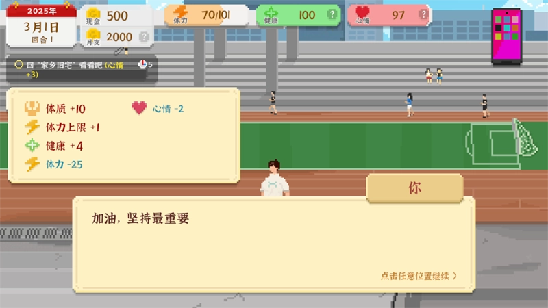 倘若每月的固定支出已无法对你构成阻碍,你便能在小镇中尽情游玩。当满足某些条件时,你就能够选择手动终止本轮游戏,结束独自生活的状态,进而进入结局。