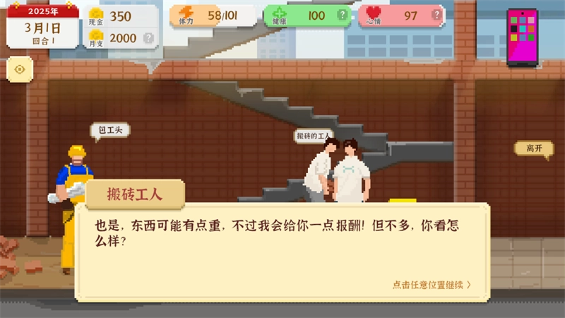 5、除此之外,玩家能够在便利店之类的场所通过兼职打工来赚取金钱。