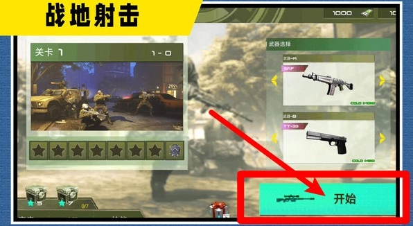 1. 轻点右下角的“开始”按钮,随即投身于激烈的战场射击对抗之中。在此过程中,要合理地切换武器,并巧妙利用地形,迅速歼灭敌人,达成任务目标。