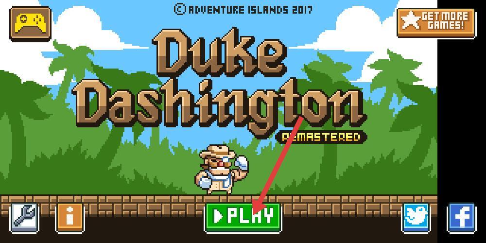 1、启动界面呈现像素风画面下方绿色Play按钮突出,左侧设设置和信息图标,点击绿色按钮开启冒险。
