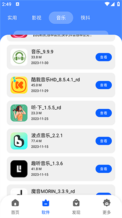 2、在软件板块,有详细的资源分类,包括影视、音乐以及工具等。