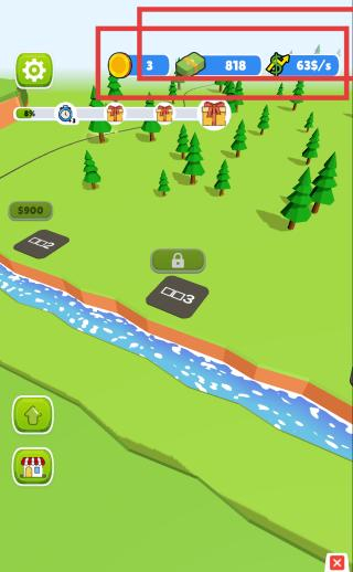 3、游戏界面的顶部区域,有金币、绿钞和类似能量的资源,是游戏内资源的持续产出速度,用于维持游戏内的建设和发展。
