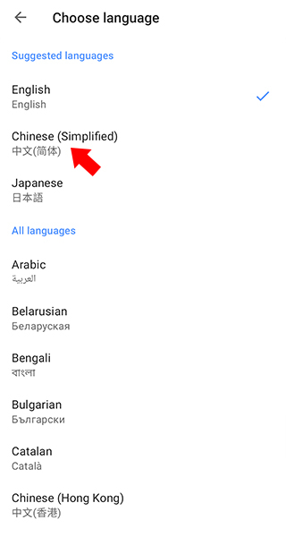 4、之后找到并选择Chinese(simplified)即可将语言更改为简体中文即可。