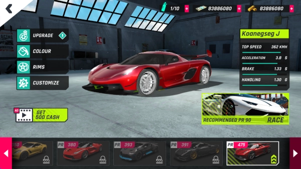 1. 玩家可解锁使用超多炫酷跑车,每一款跑车不仅外观独特帅气,属性设定也各不相同。