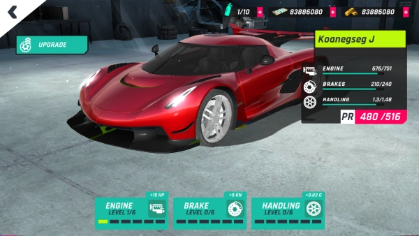 3、玩家通过挑战赚取的金币,可用于对自己的车辆进行改装,从三大部位提升车辆的极致属性。