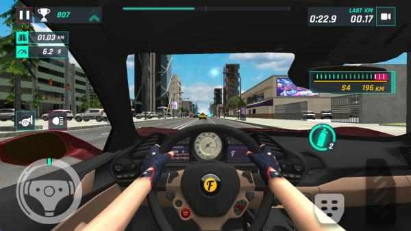 2、车辆操控方式多样,左侧轮盘可控制移动方向,右侧则用于操控刹车与油门。此外,还设有鸣笛与灯光的逼真模拟,更有氮气加速,带来超燃的飙车体验。
