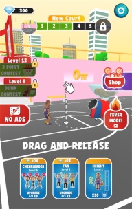 玩家只需用手指拖动游戏中的人物,让其手中的篮球投入篮筐,就能获得相应的得分。